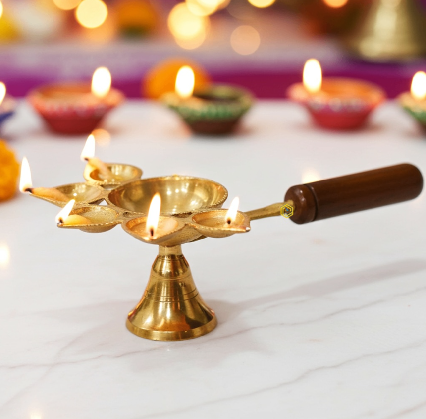 Brass Wooden Panch Arti No. 2