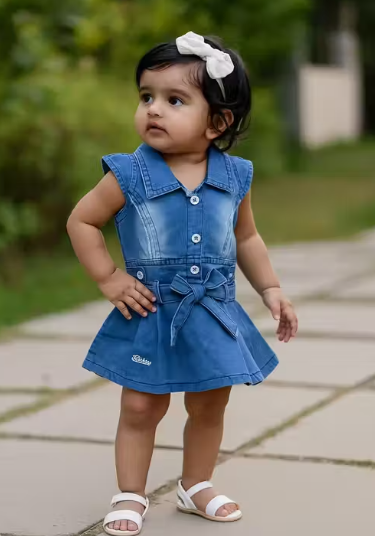 The Bublee Dublee Trendy Soft Denim Frock for Baby Girls is a cute and comfortable denim‑style dress designed especially for infants and toddlers. Made from soft, kid‑friendly denim fabric, this frock blends casual charm with everyday wearability, making it ideal for both playtime and outings.