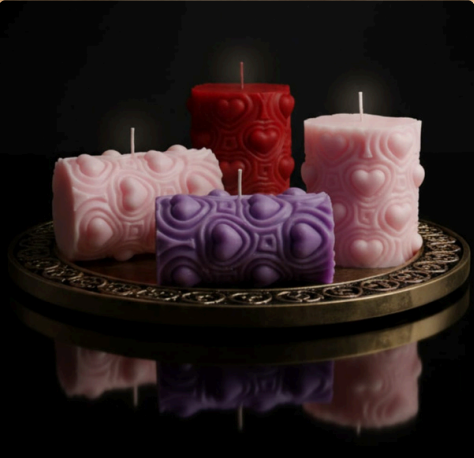 - Decorative Heart Pattern Pillar Candle Set – Set of colored heart‑patterned candles — budget‑friendly and cute for homes or gifting.