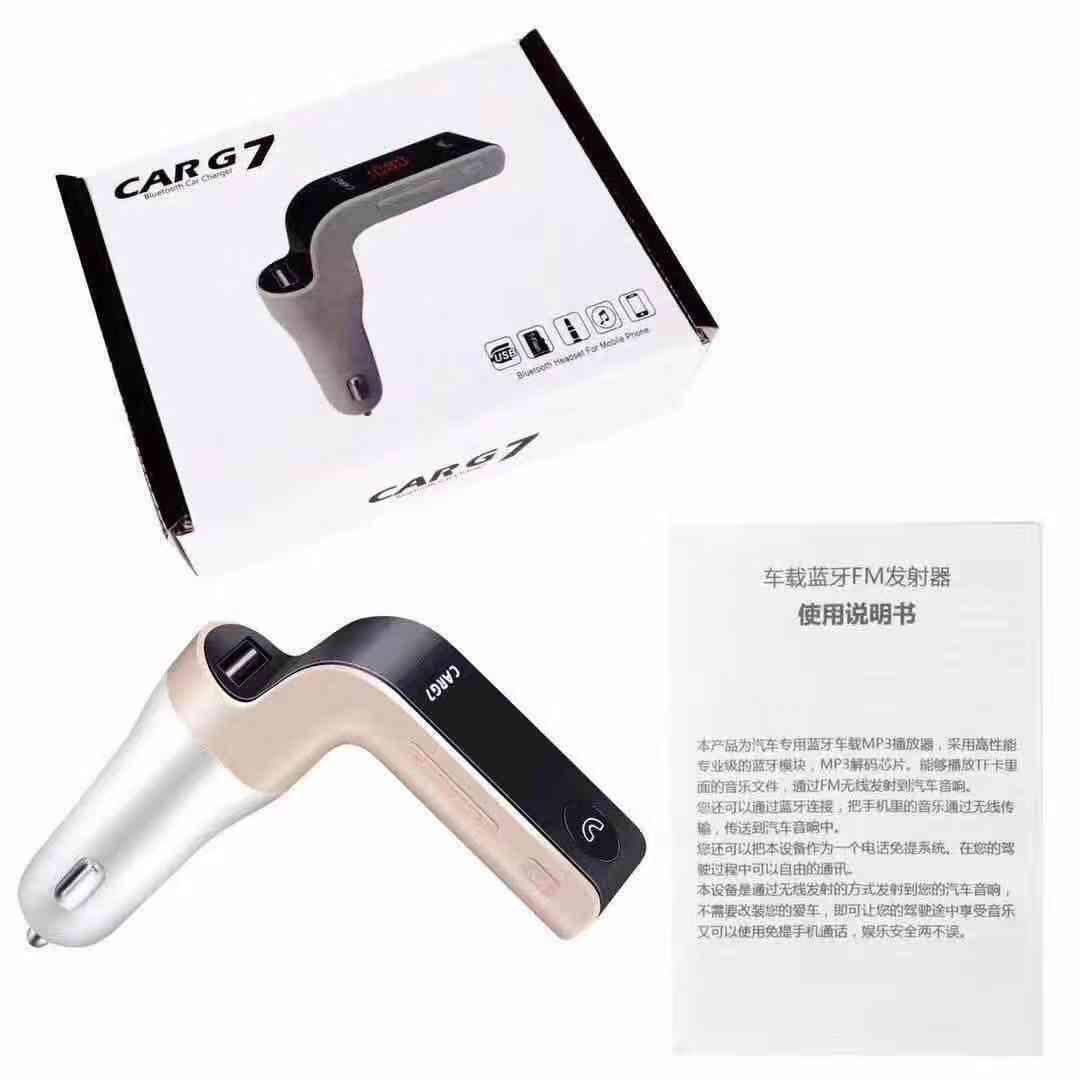 - The Car G7 LCD Bluetooth Car Charge is a multifunctional car accessory that can be used to charge devices, play music, and make hands free phone calls. It features a built in LCD screen that displays the car battery voltage and FM frequency, as well as caller ID information during phone calls. It also includes a USB port for charging devices such as smartphones or tablets while on the go.