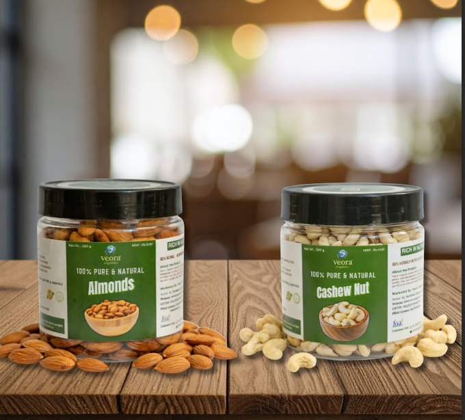 Enjoy the richness of premium dry fruits with the Veora Organics Cashew Nut & Almond Combo. This healthy and delicious pack combines the crunch of cashew nuts with the nutrient-packed goodness of almonds, making it a perfect everyday snack for the whole family.