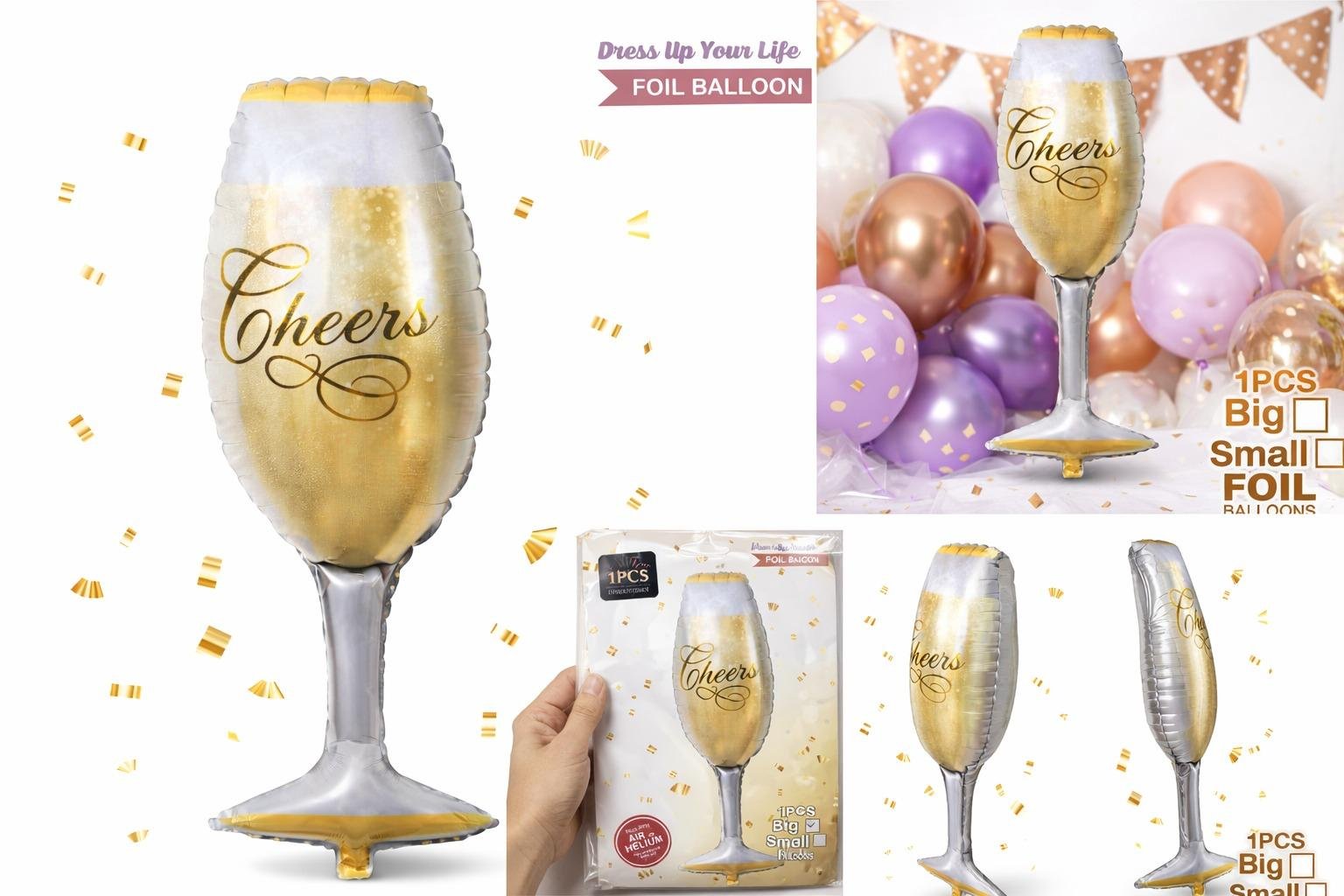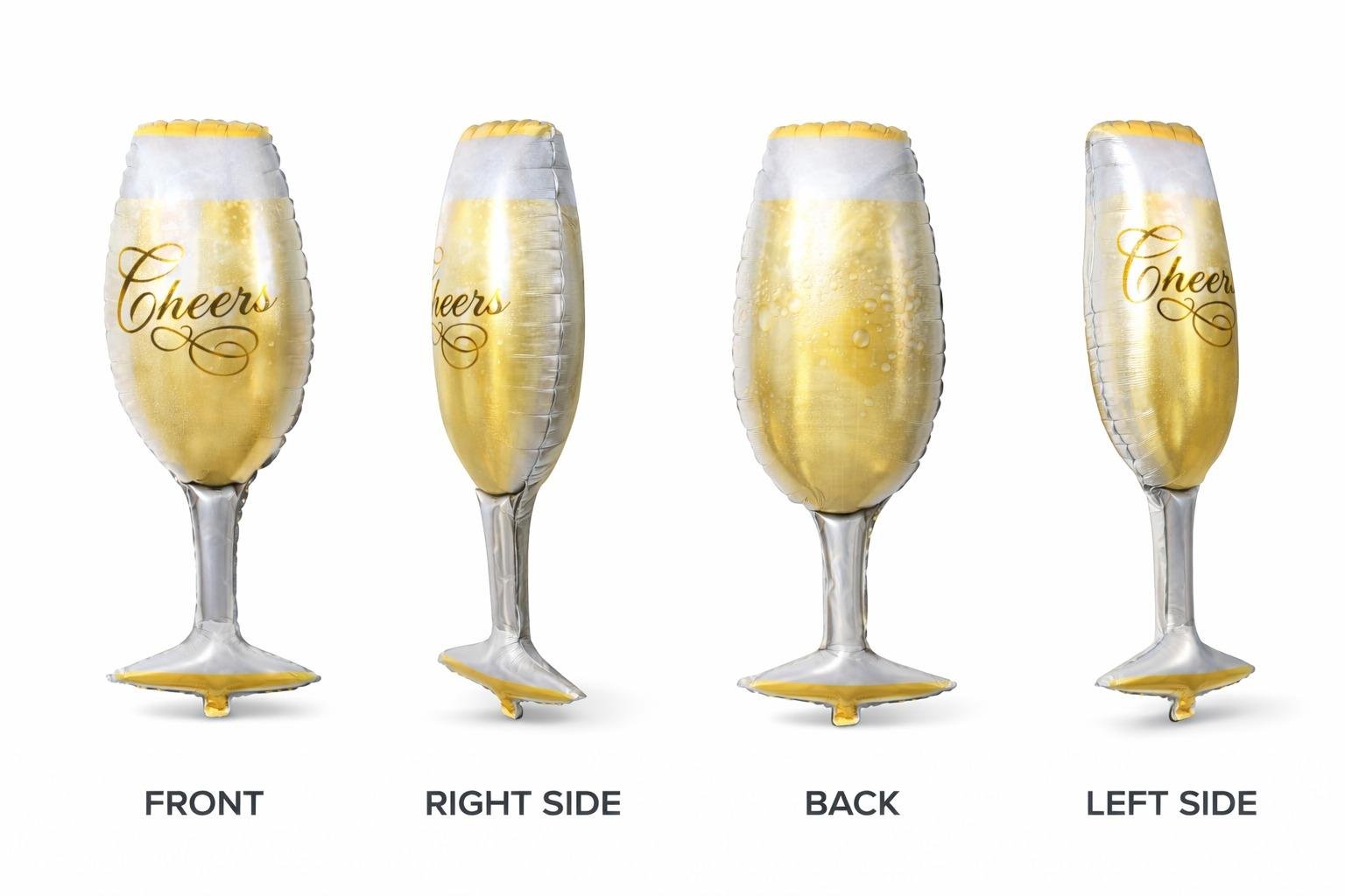 - Party Town 32" Cheers Champagne Bottle & Glass Foil Balloon – Classic set with both a champagne bottle and glass — great for themed décor or balloon bouquets.
