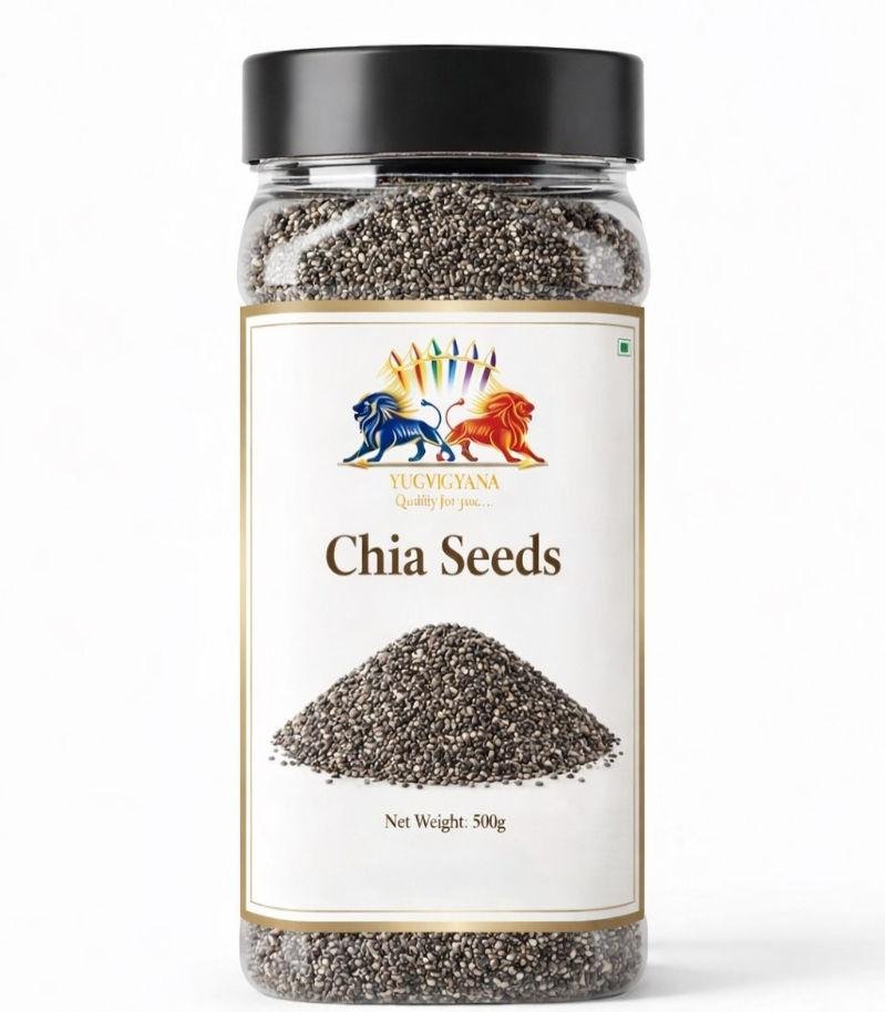 Item Name: Premium Chia Seeds - Omega-3 Rich Superfood Brand: YUGVIGYANA Form: Whole Seeds Grade: Premium Quality - A Grade Diet Type: Vegetarian, Gluten-Free, Vegan Packaging: Food-grade resealable pouch with moisture barrier Net Weight: 250g / 500g / 1000g (Multiple variants) Bulk Pack: 5 Kg & 10 Kg available Storage: Store in cool, dry place away from direct sunlight Certification