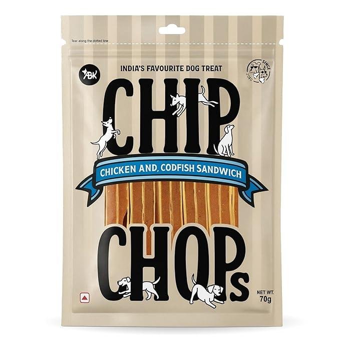 Chip Chops Chicken & Codfish Sandwich Dog Treats - 70g (Pack of 1) Healthy, Tasty, High-Protein Snacks for Training & Rewards | Suitable for All Breeds