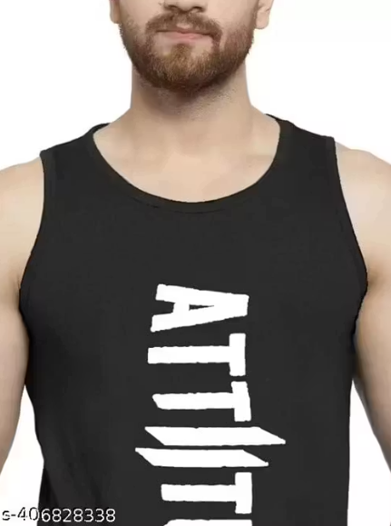Upgrade your casual style with this black printed sleeveless T-shirt, designed for comfort and a bold, modern look. Crafted from soft cotton fabric, it offers excellent breathability and a smooth feel—perfect for all-day wear.
