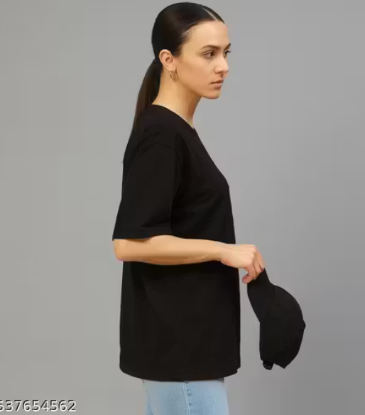Chughz Girlish Oversize Plain Cotton Blend T-shirt