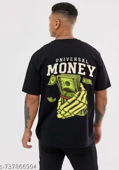 CHUGHZ Men’s Black Cotton MONEY Printed T-Shirt | Front & Back Money Graphic Print | Half Sleeve Round Neck Regular Fit Casual Tee | Cotton Gym Wear T-Shirt for Men
