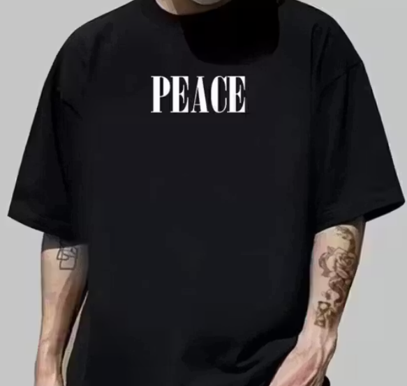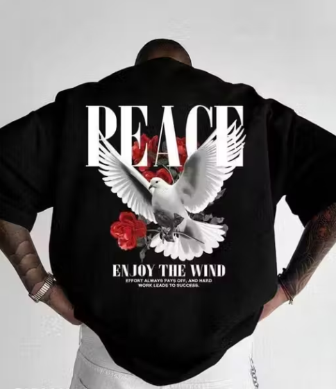 CHUGHZ Men’s Black Cotton Peace Dove Printed T-Shirt | Front & Back Kabutar Graphic Print | Half Sleeve Round Neck Regular Fit Casual Tee | Cotton Gym Wear T-Shirt for Men
