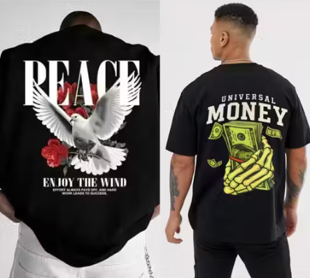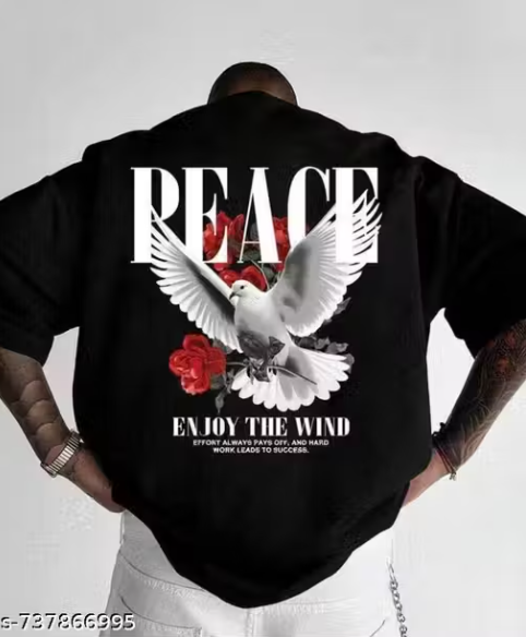CHUGHZ Men’s Black Cotton Peace Dove Printed T-Shirt | Front & Back Kabutar Graphic Print | Half Sleeve Round Neck Regular Fit Casual Tee | Cotton Gym Wear T-Shirt for Men