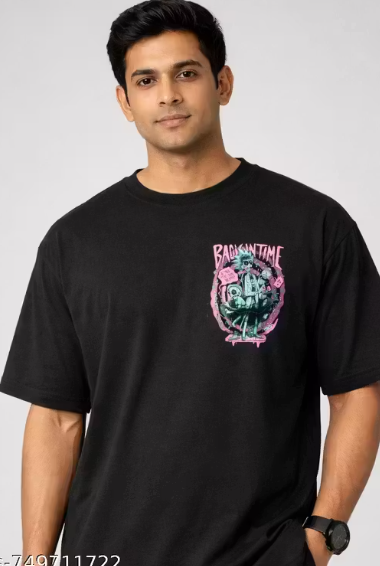 Chughz Men's Black Cotton Printed T-shirts