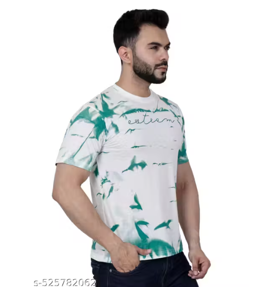 Refresh your casual wardrobe with this green abstract printed T-shirt, designed for comfort and modern style. Crafted from a soft cotton blend fabric, it offers a breathable feel and smooth finish—perfect for all-day wear.