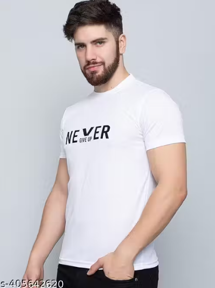 Upgrade your everyday essentials with this stylish white typography printed T-shirt, designed for comfort, stretch, and a modern look. Crafted from premium Lycra fabric, it offers excellent flexibility, a smooth feel, and a body-friendly fit—perfect for all-day wear.