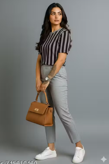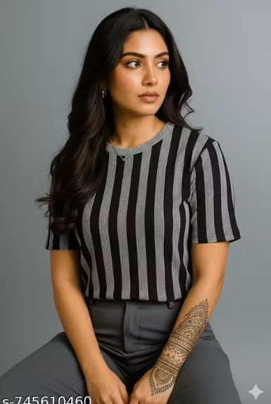- Pattern: Vertical striped print for a modern, elongating look