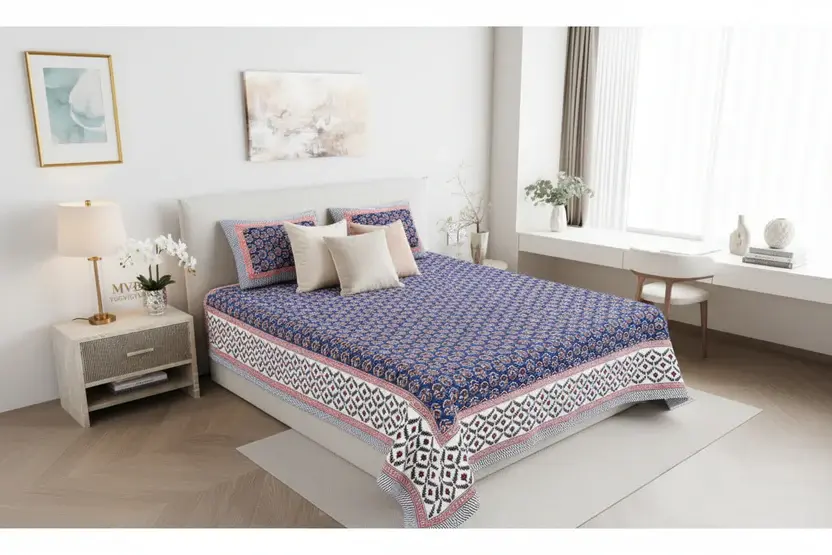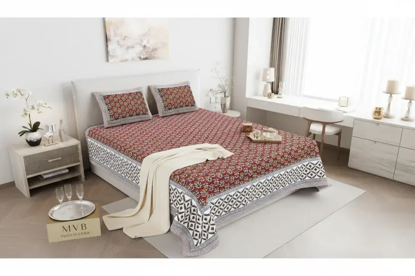 Classic Sanganeri Buti Double Bedsheet Pure Cotton