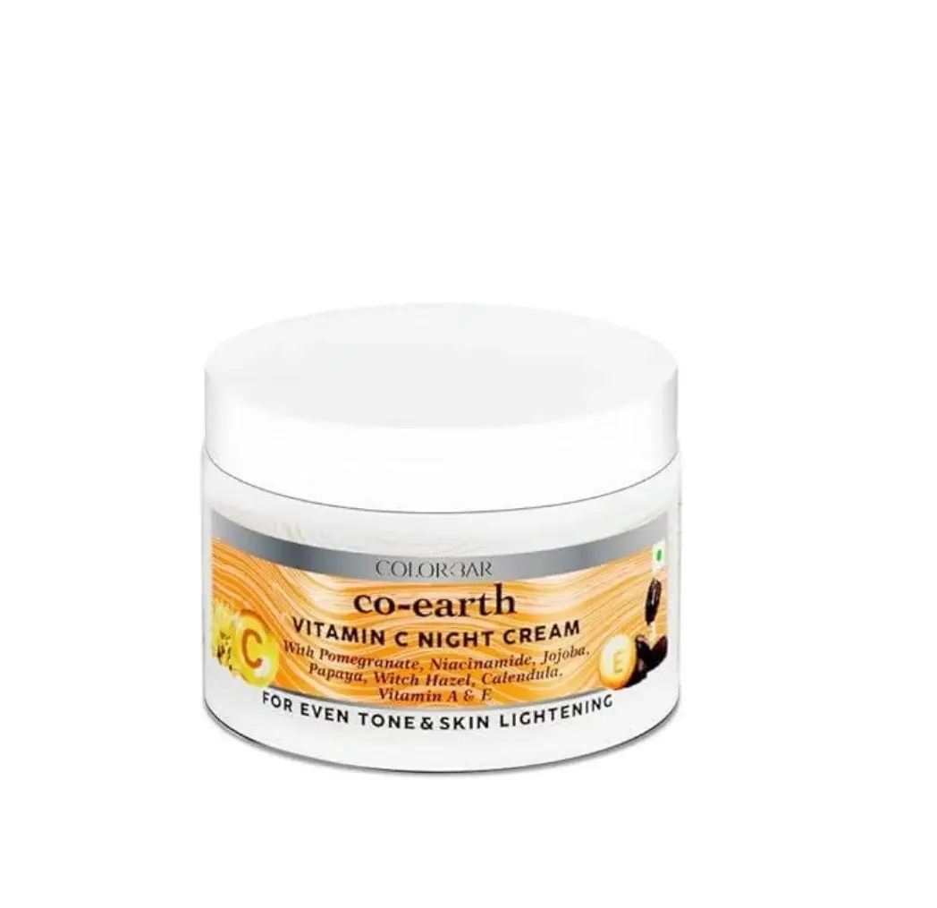 Co-Earth Vitamin C Night Cream is a nourishing overnight cream designed to repair and rejuvenate the skin while you sleep. Enriched with Vitamin C, Pomegranate, Niacinamide, Jojoba Oil, Papaya, Witch Hazel, and Calendula, it helps improve uneven skin tone, reduce dullness, and enhance natural glow. The rich yet non-greasy formula supports skin renewal, hydration, and brightness. Suitable for all skin types and ideal for men & women, it leaves skin soft, smooth, and radiant by morning.