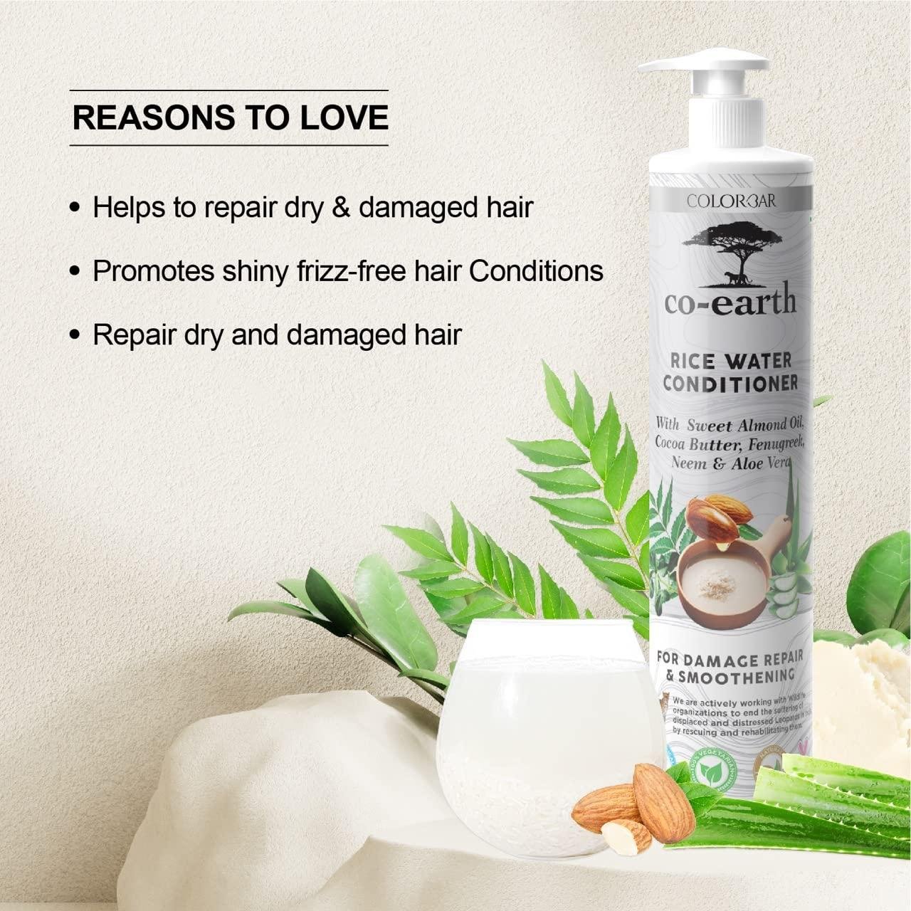 CoEarth Rice Water Conditioner is specially formulated to repair damaged hair and improve smoothness. Enriched with Rice Water, Sweet Almond Oil, Cocoa Butter, Fenugreek, Neem, and Aloe Vera, it deeply nourishes hair strands, helps reduce dryness, and improves manageability. Regular use makes hair softer, smoother, and shinier while supporting damage repair and overall hair health. Suitable for all hair types.