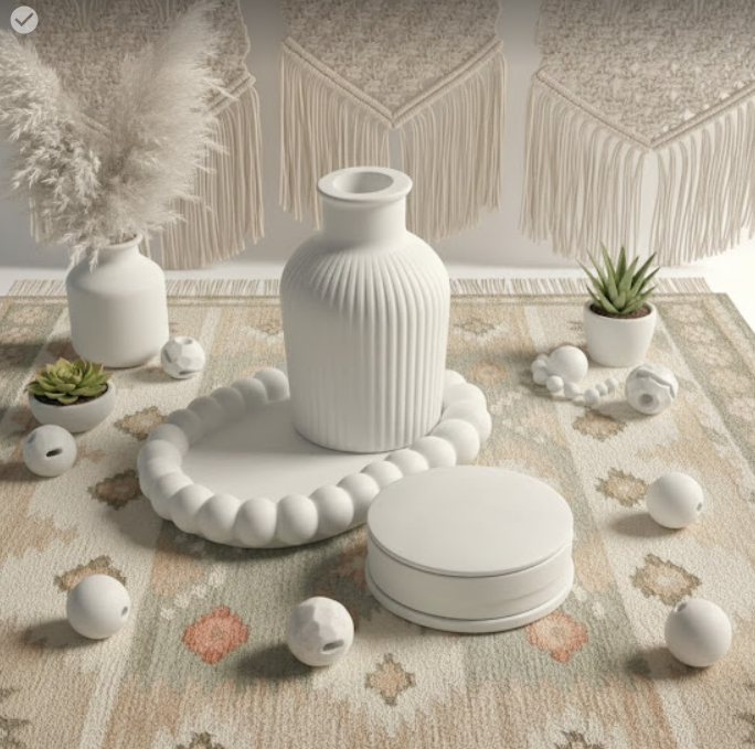 Handmade gypsum décor item with a smooth matte finish.