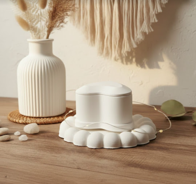 Combo 15 - round bubble tray + Vase + heart jewellery box