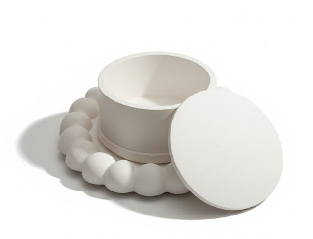 Handmade gypsum décor item with a smooth matte finish.