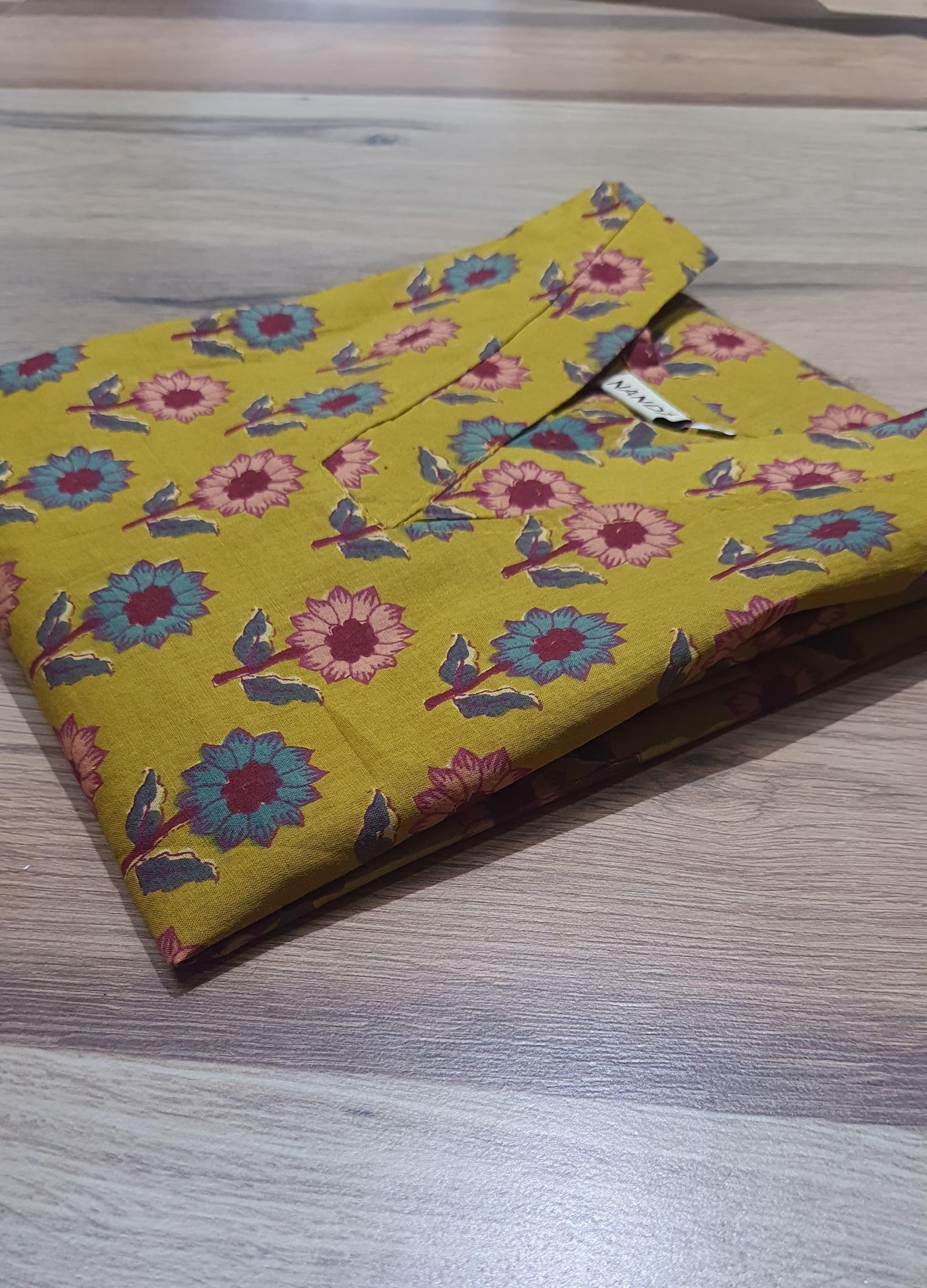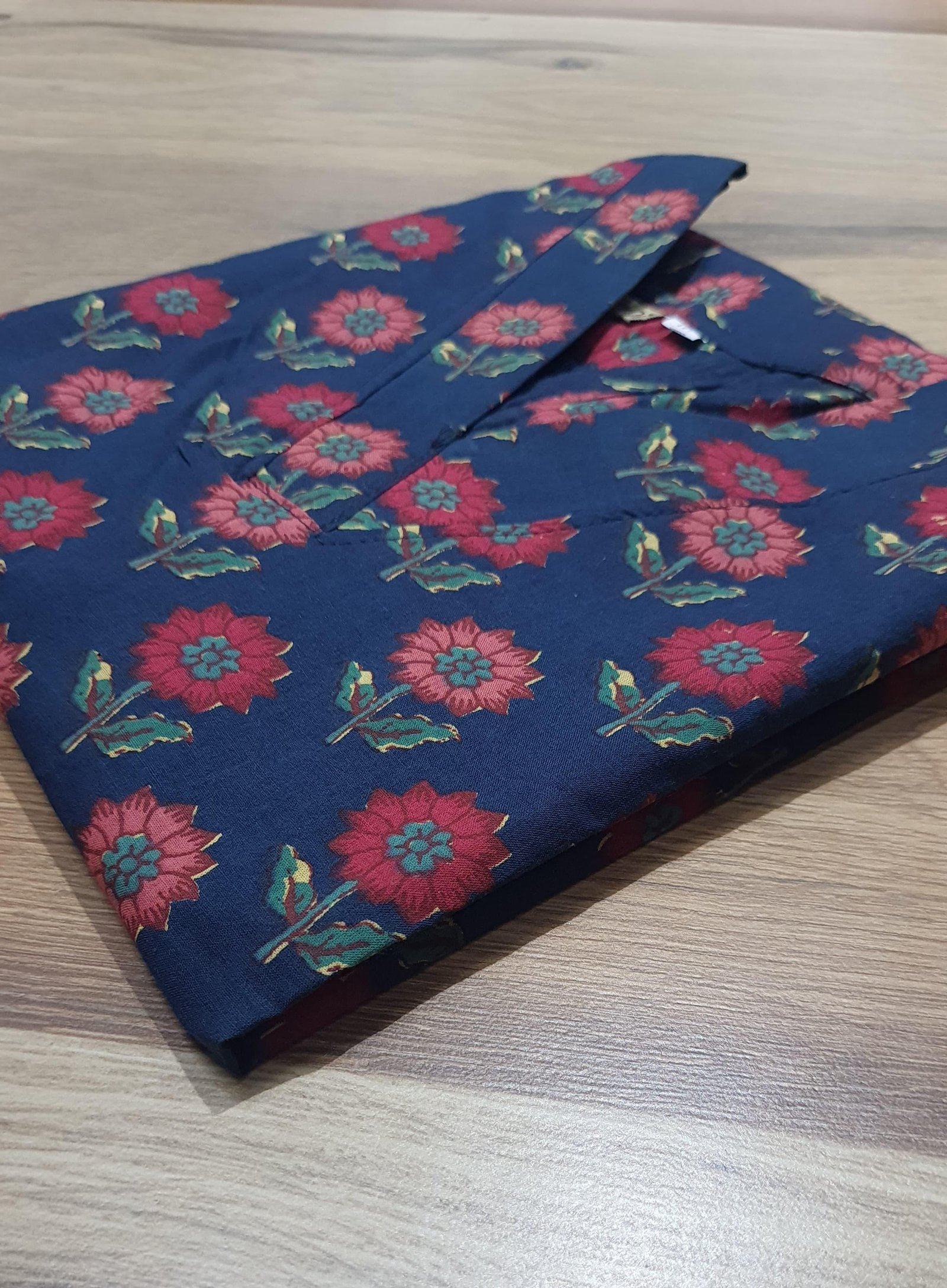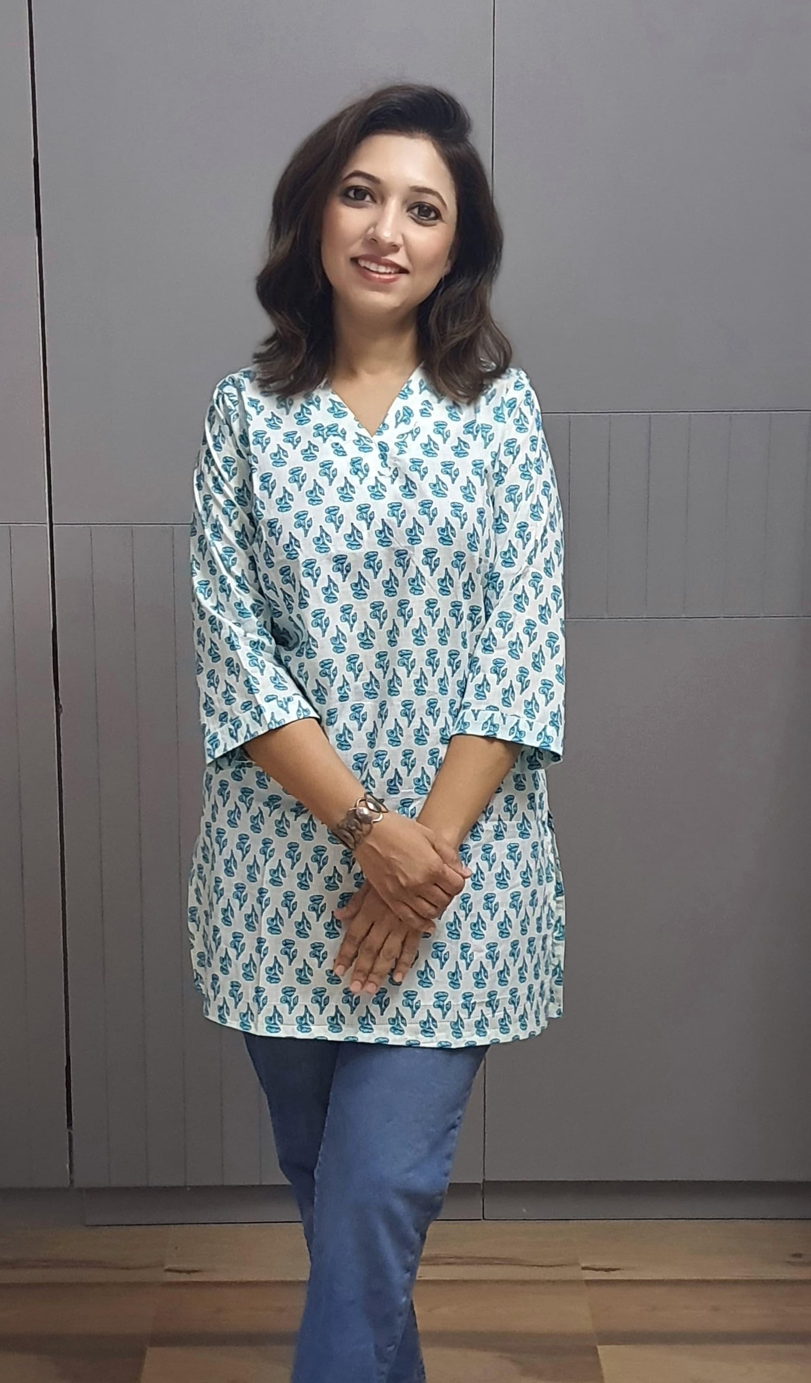 ππ»This tunic is made of pure cotton cambric fabric which gives excellent look. It has 3/4th sleeves with side slit. It has V neck patti pattern.