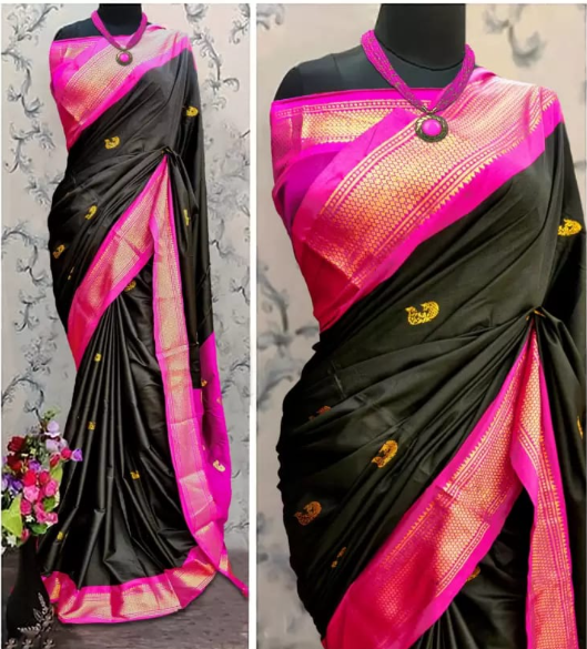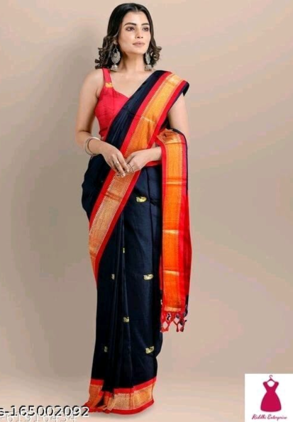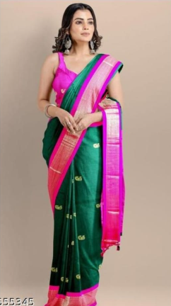 Cotton Silk Pai Thani Border Saree with Contras Blouse ,Zari Border