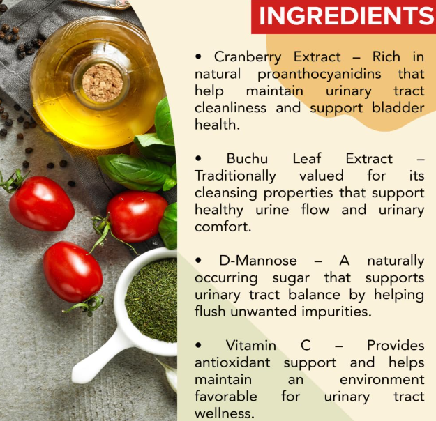 - Supports Urinary Tract Health: Helps reduce the risk of UTIs by preventing harmful bacteria from adhering to the urinary walls.