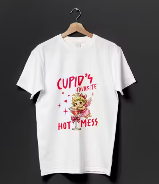 Cupid’s Favorite Hot Mess Printed White Cotton T-Shirt for Women