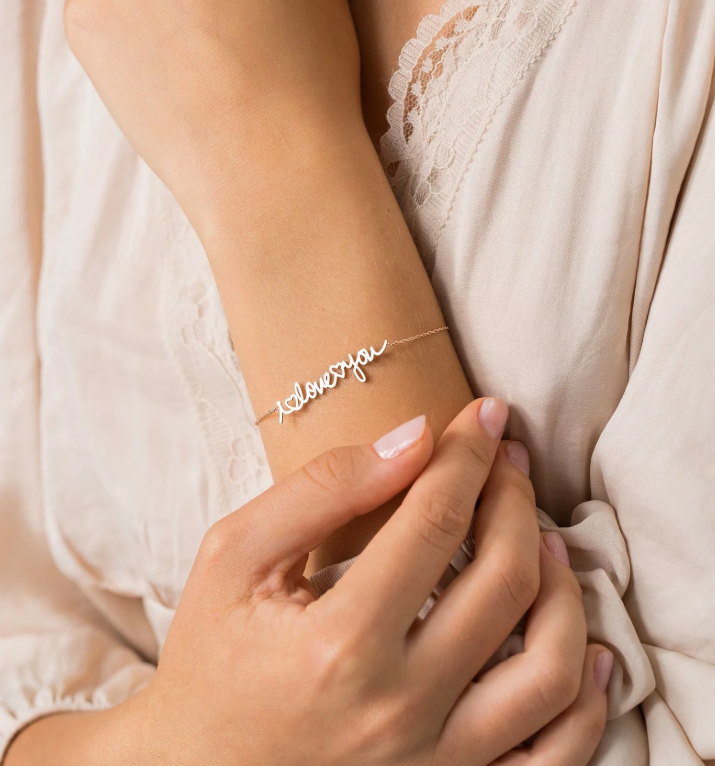 Custom Handwriting Bracelet | Personalized Gold Bracelet | Dainty Name Bracelet | Handmade Name Charm Jewelry | Perfect Gift for Mom