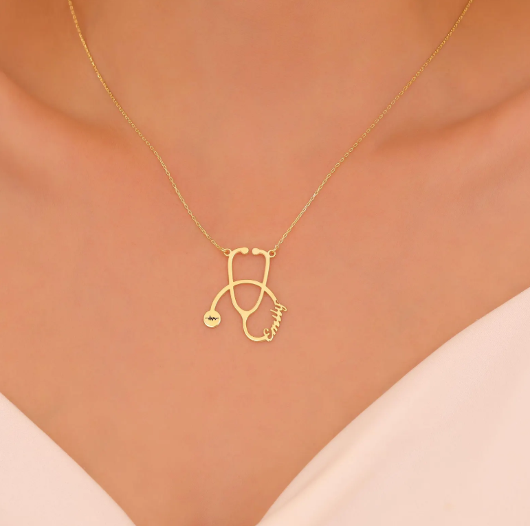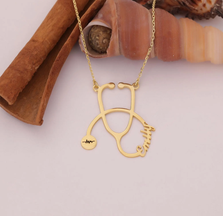 Custom Stethoscope Name Necklace, Medical Jewelry Gift for Nurse or Doctor, Unique Graduation Gift, Valentine's Day Gift