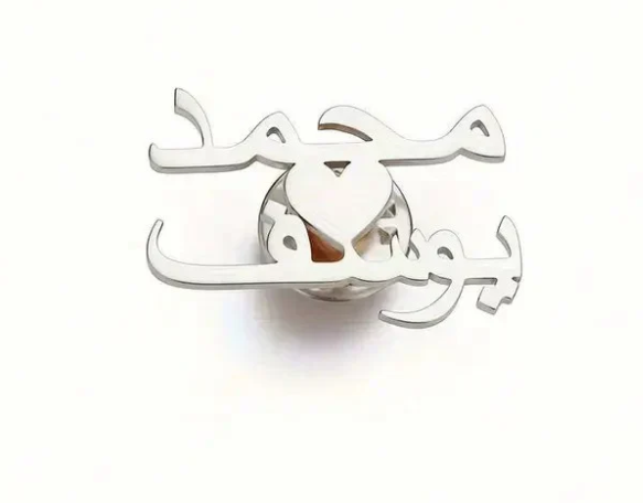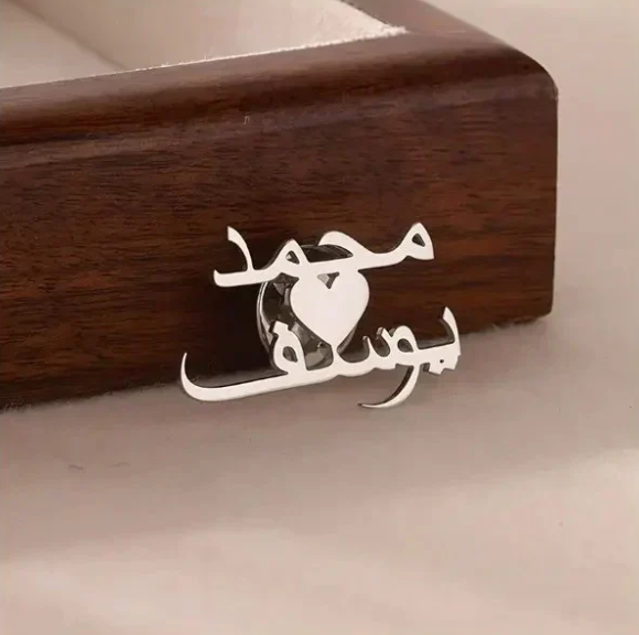 Express love and uniqueness with the Customized Two Arabic Letters in a Heart Shape Brooch. This elegant brooch features two Arabic letters intertwined in a heart design, personalized just for you. A meaningful and stylish accessory, perfect for adding a personal touch to any outfit.