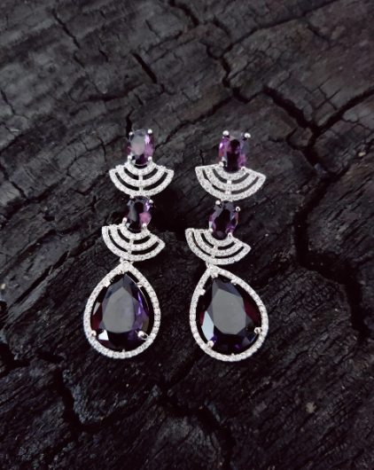 Make a regal style statement with this exquisite CZ Royal Violet Tear Drop Necklace Set, crafted to add elegance and royal charm to your look.