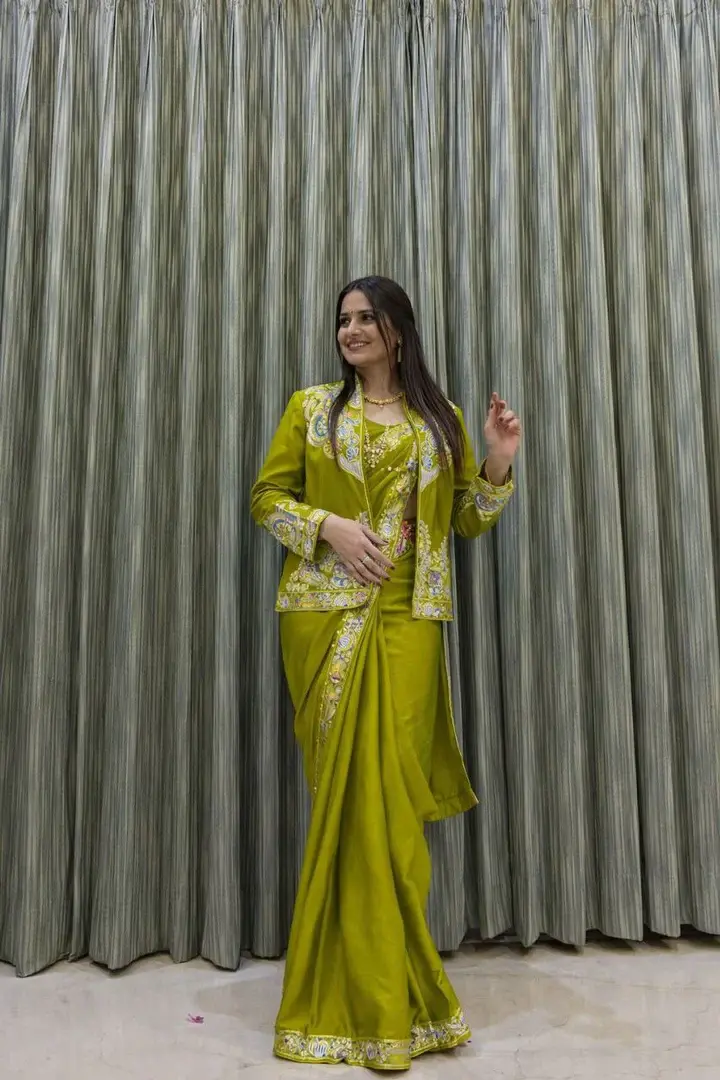New Super Trending Party jacket with saree Ready to wear Embroidery work sareeÂ