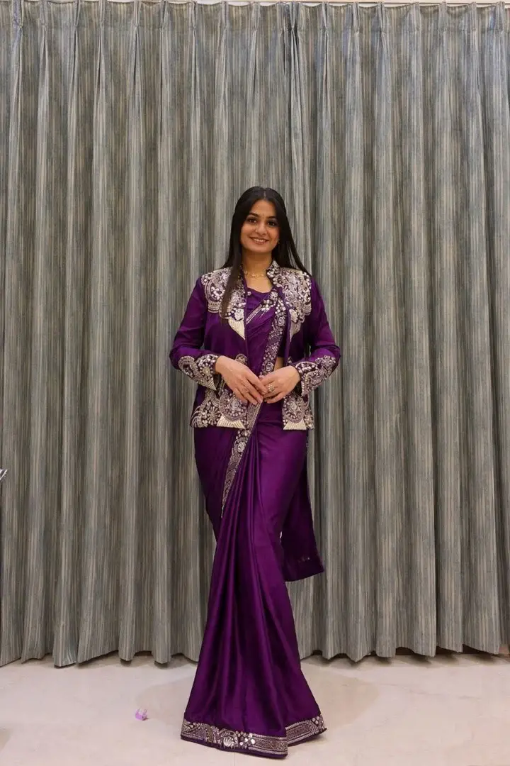 D 47 ❤️ Rani Pink Embroidered Jacket Saree