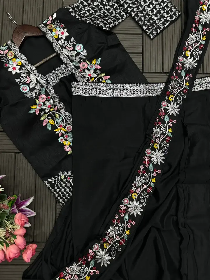 D 90🖤 Elegant Black Indo-Western Saree Set 🖤