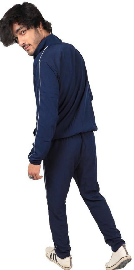 Dark Blue Polyester Blend Regular Track Suit For Men