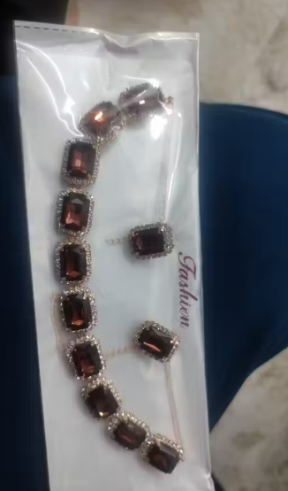 Dazzling Stones Necklace Earring Set For Women (WINECOLOUR)
