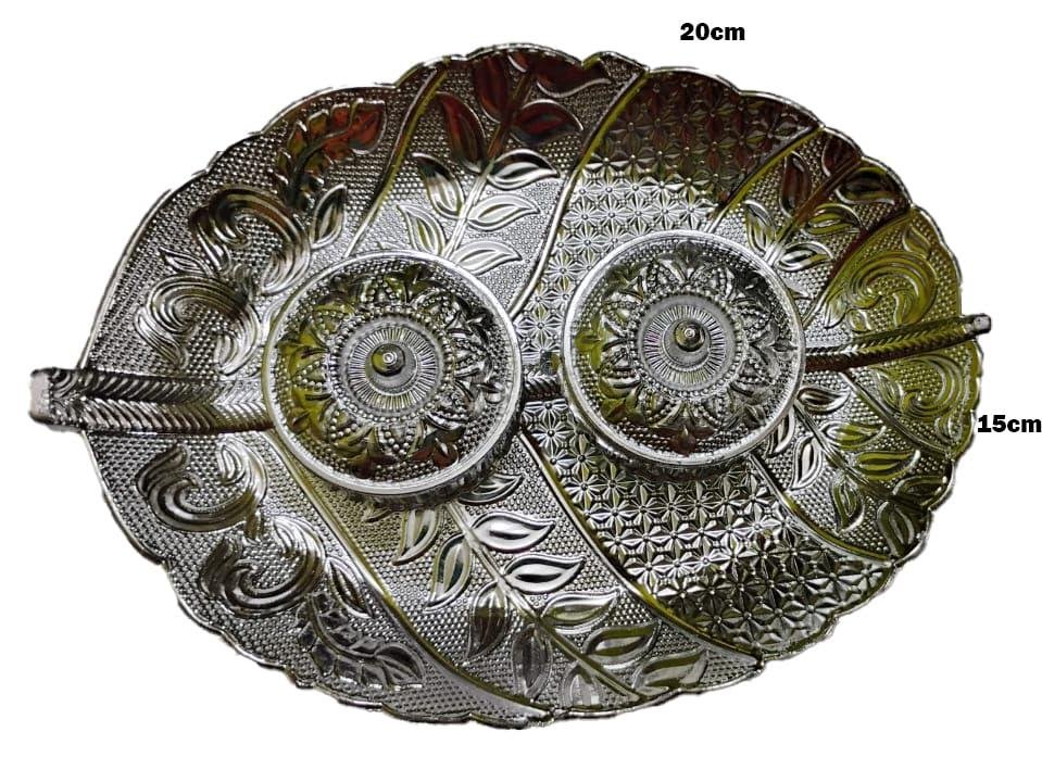 Decorative Silver-Coated Plastic Oval Serving Tray, Traditional Kumkum Sandal Plate