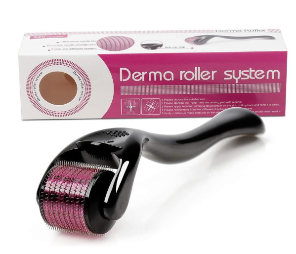 Derma Roller System, 0.5 mm Titanium Needles, 540 Pins, Hair Growth and Repair Tool, Black and Pink (pack of 1, Medium)