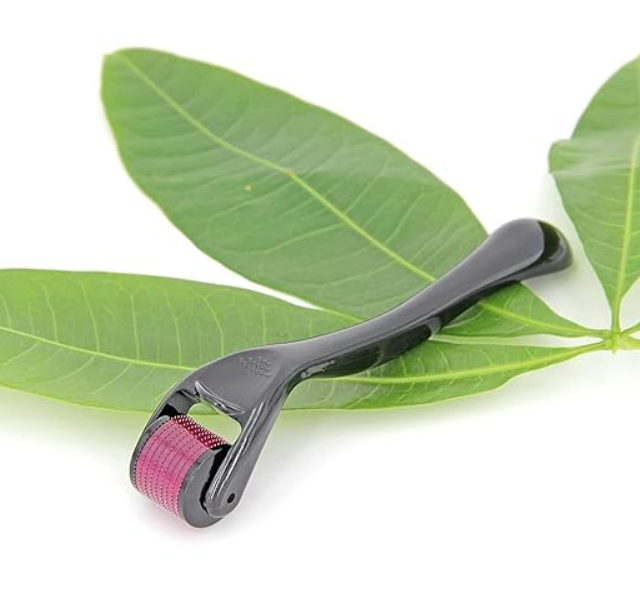 Derma Roller System, 0.5 mm Titanium Needles, 540 Pins, Hair Growth and Repair Tool, Black and Pink (pack of 4, Medium)