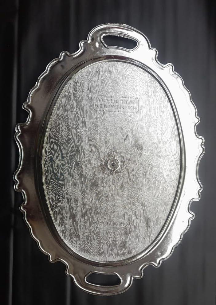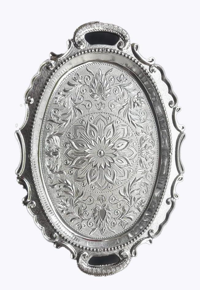 Design Decor Gallery Oval German Silver Plated Decorative Serving Tray Set, 14 Inch, 10 Inch, Floral Engraved Design, Gift for Diwali, Anniversary, House Warming, Birthday, Wedding