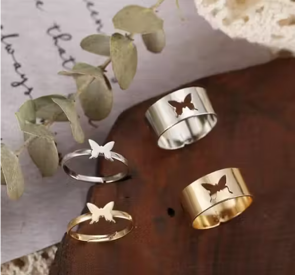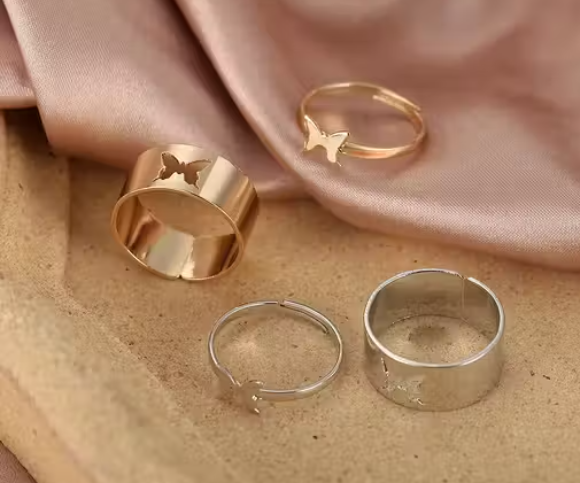 DESIGNER Butterfly Couple Ring For Engagement Matching Wrap Finger Ring For Women And Men - SILVER AND GOLDEN (2PAIR COMBO)