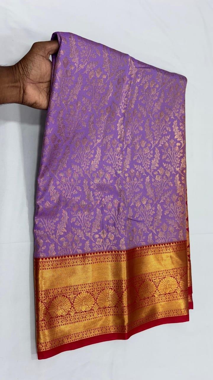 Lightweight and comfortable, the saree offers a graceful drape with a smooth finish and silk-like shine. Its rich colours and intricate patterns make it an excellent choice for weddings, festive occasions, poojas, and traditional functions.