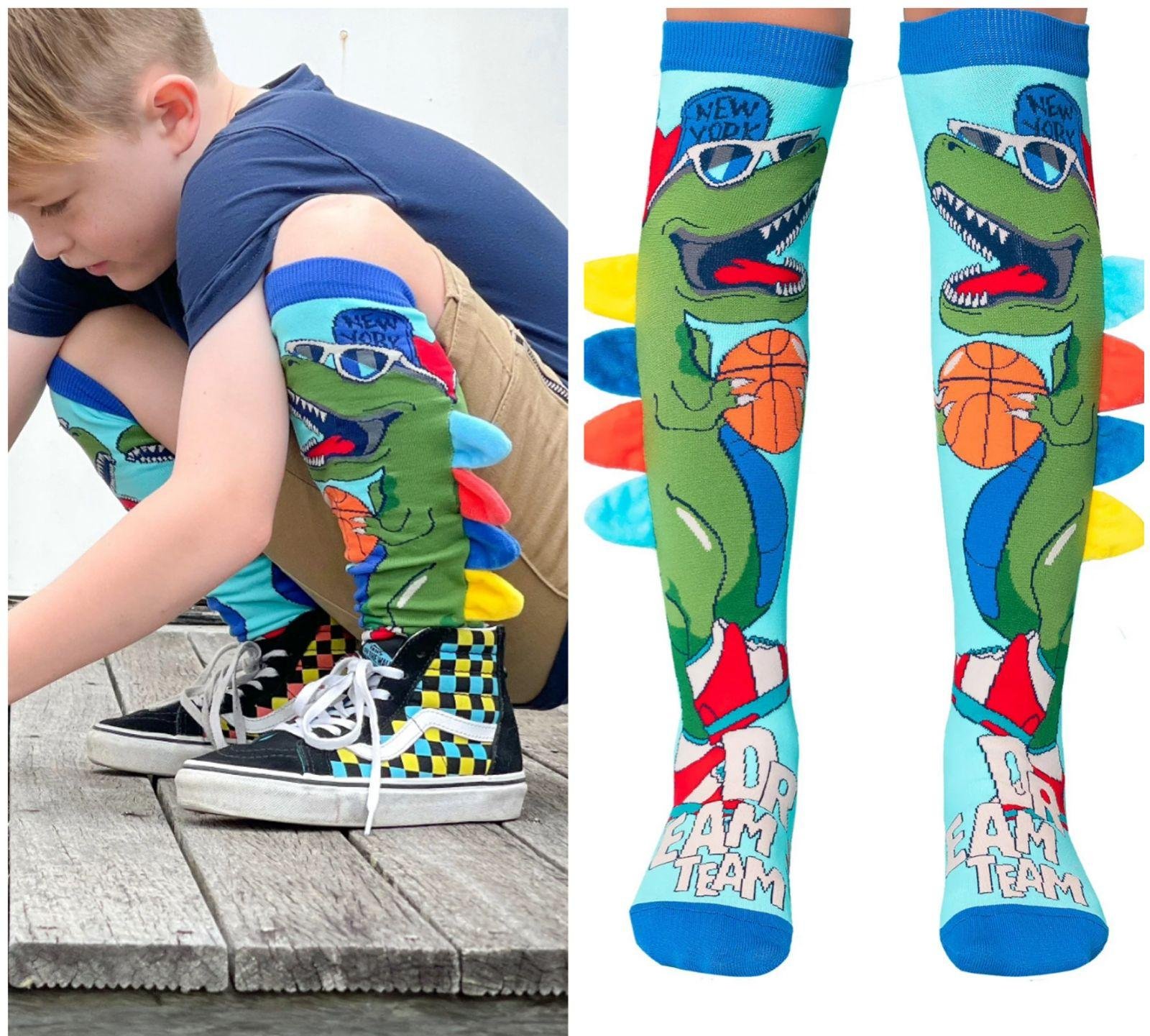 - DINOSAUR SOCKS: Let the world hear you ROAR while wearing our coolest Dinosaurs Socks with plush spikes! Never stop exploring with your latest Dino inspired socks.