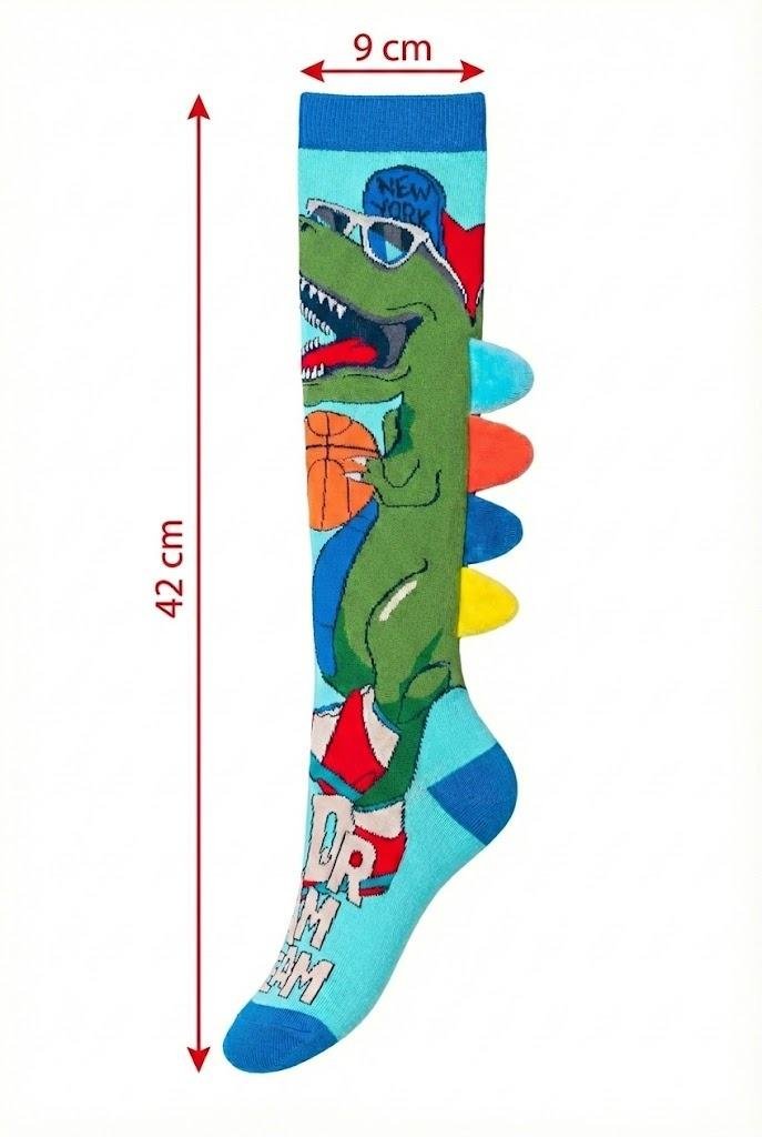 Dinosaur Socks, Coolest knee-High Dinosaurs Socks With Plush Spikes, Animal-theme, Soft Cotton, Sweat-Absorb, Comfortable, For Kids