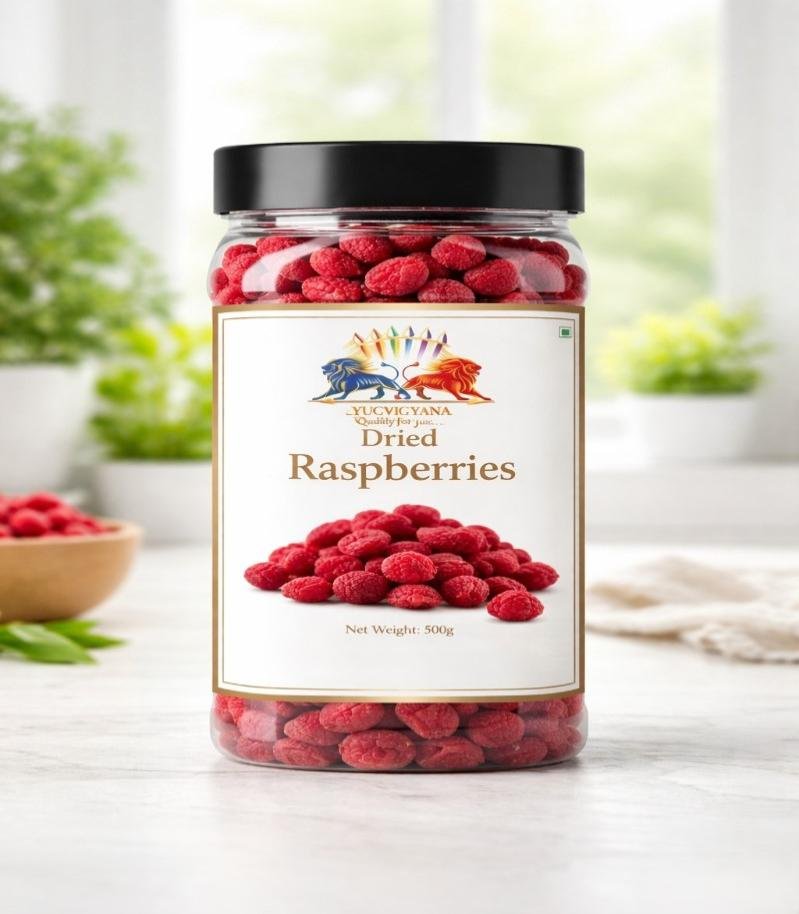 Sealed in food-grade, resealable packaging to preserve freshness and flavor, our Dried Raspberries are free from artificial additives and meet all FSSAI quality standards. Experience the authentic taste of premium berries with every bite.