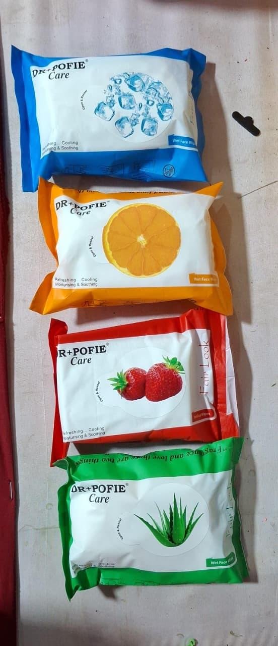 DR+POFIE Care Refreshing Wet Face Wipes, Aloe Vera, Orange, Ice Cool Variants, Pack of 3