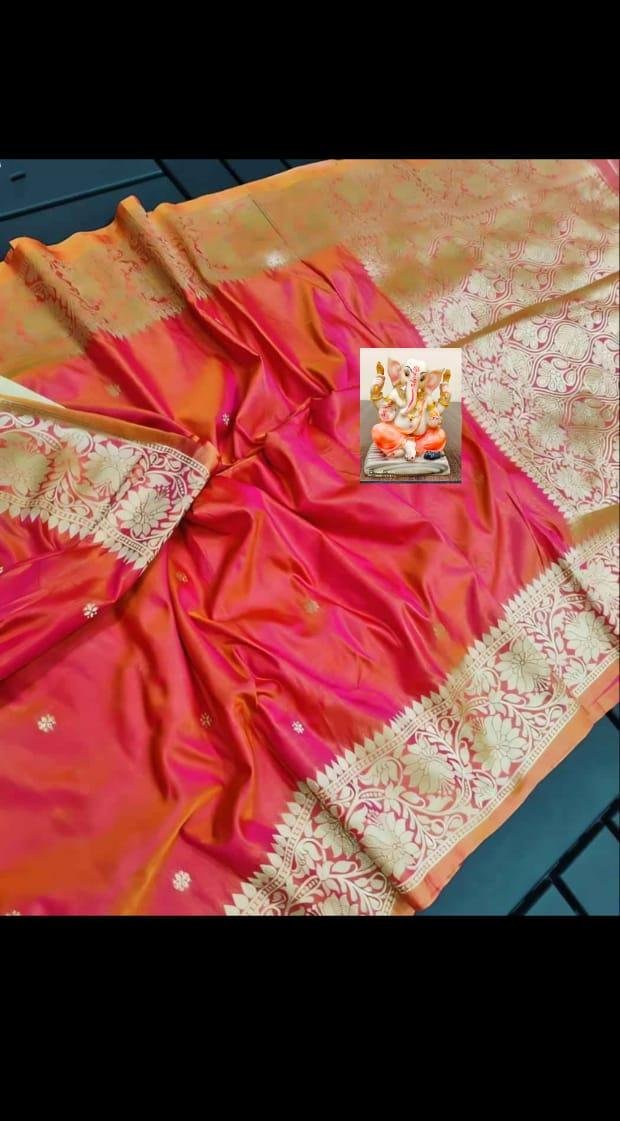 Experience timeless elegance with this exquisite Dual Tone Katan Silk Saree, crafted to showcase the rich heritage of traditional weaving. Made from premium quality Katan silk, this saree features a stunning dual-tone effect that beautifully changes hues with light and movement, adding depth and sophistication to the drape. The fabric is known for its smooth texture, natural sheen, and durability, making it perfect for grand occasions.