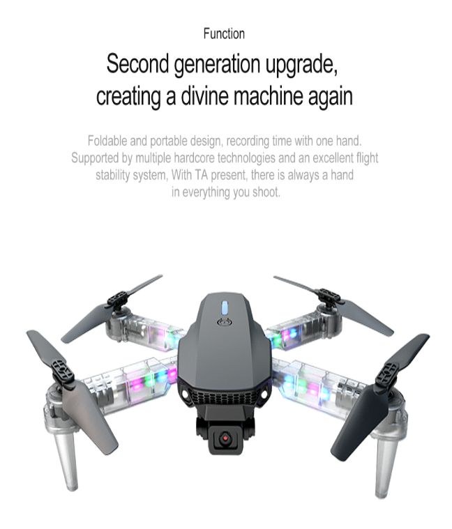 E88D Max Pro Light is an upgraded foldable drone designed for stable flight and high-quality aerial shots. Equipped with optical flow positioning and 4K HD camera, it ensures smooth performance and easy control for beginners.