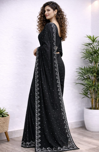 Elegant Black Embroidered Party Wear Saree