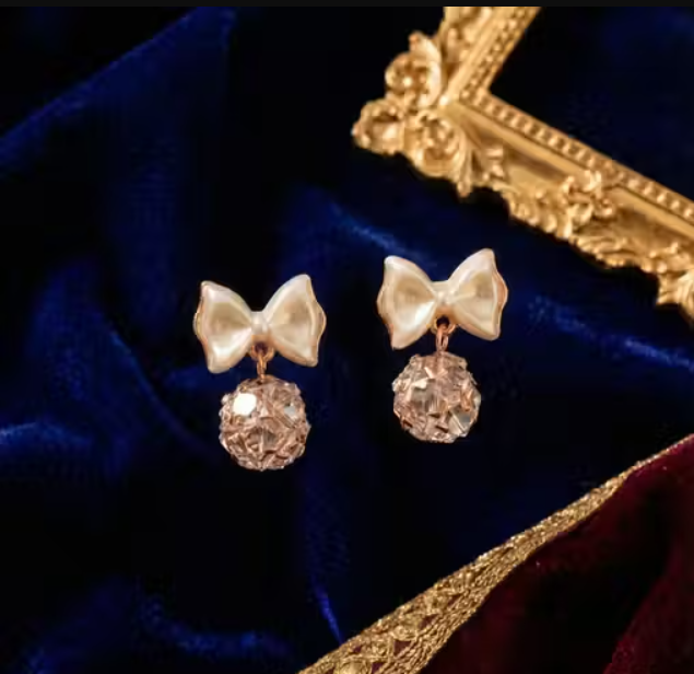 Elegant Bow Pearl Drop Earrings for Women & Girls | Cute Stylish Party Wear Earrings